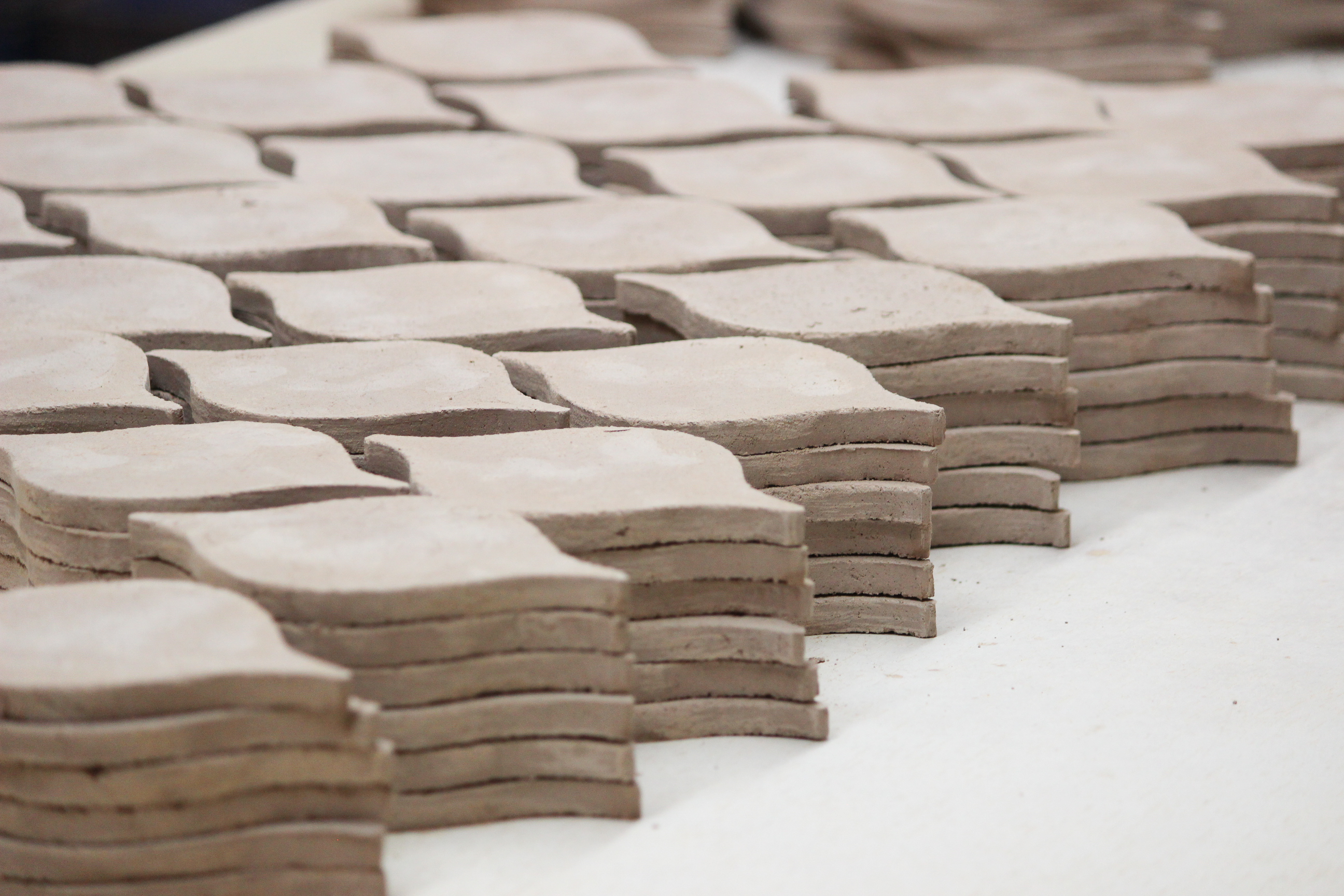Utilizamos argilas in natura moldadas à mão com uma composição exclusiva, onde 65% da sua base é composta por pastilhas de porcela descartadas.